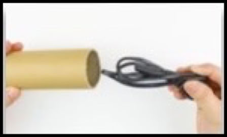 Bewaar reserve kabels in een lege wc rol